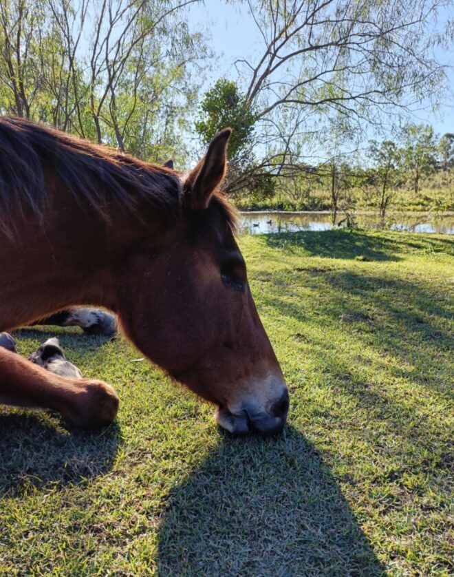 Our cheeky ginger ninja! Rascal is a 5-year-old Quarter Horse x Australian Stock Horse and a whole lot of fun. Playful, curious, and full of character, he brings lightness and joy to the herd and to anyone lucky enough to meet him. He reminds us not to take things too seriously and that healing can happen through laughter and connection, too. His medicine is play, presence, and youthful spirit.