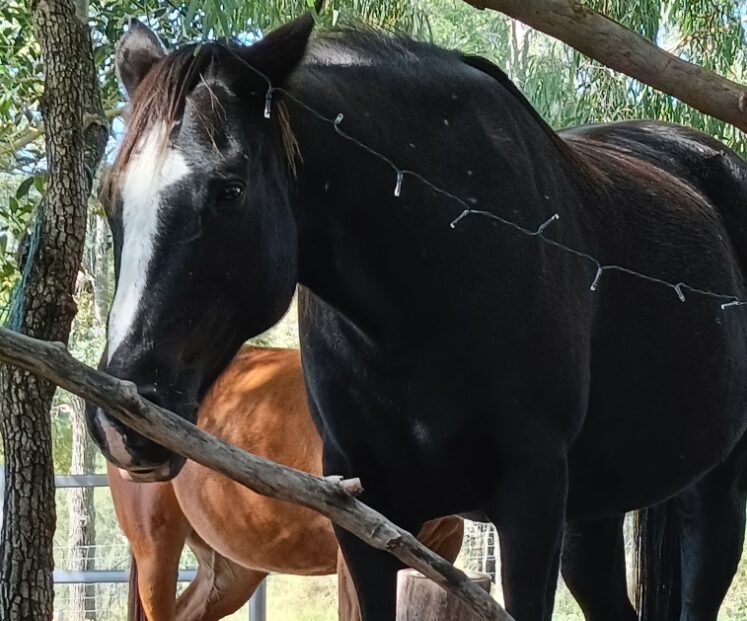 Penny is a strong and confident black roan Standardbred, around 11 years old. She’s a natural leader in her own right—steady, grounded, and full of beautiful feminine power. Her energy is bold yet deeply nurturing, and she brings a strong sense of knowing and balance into the herd. She carries a medicine that is both fierce and loving.